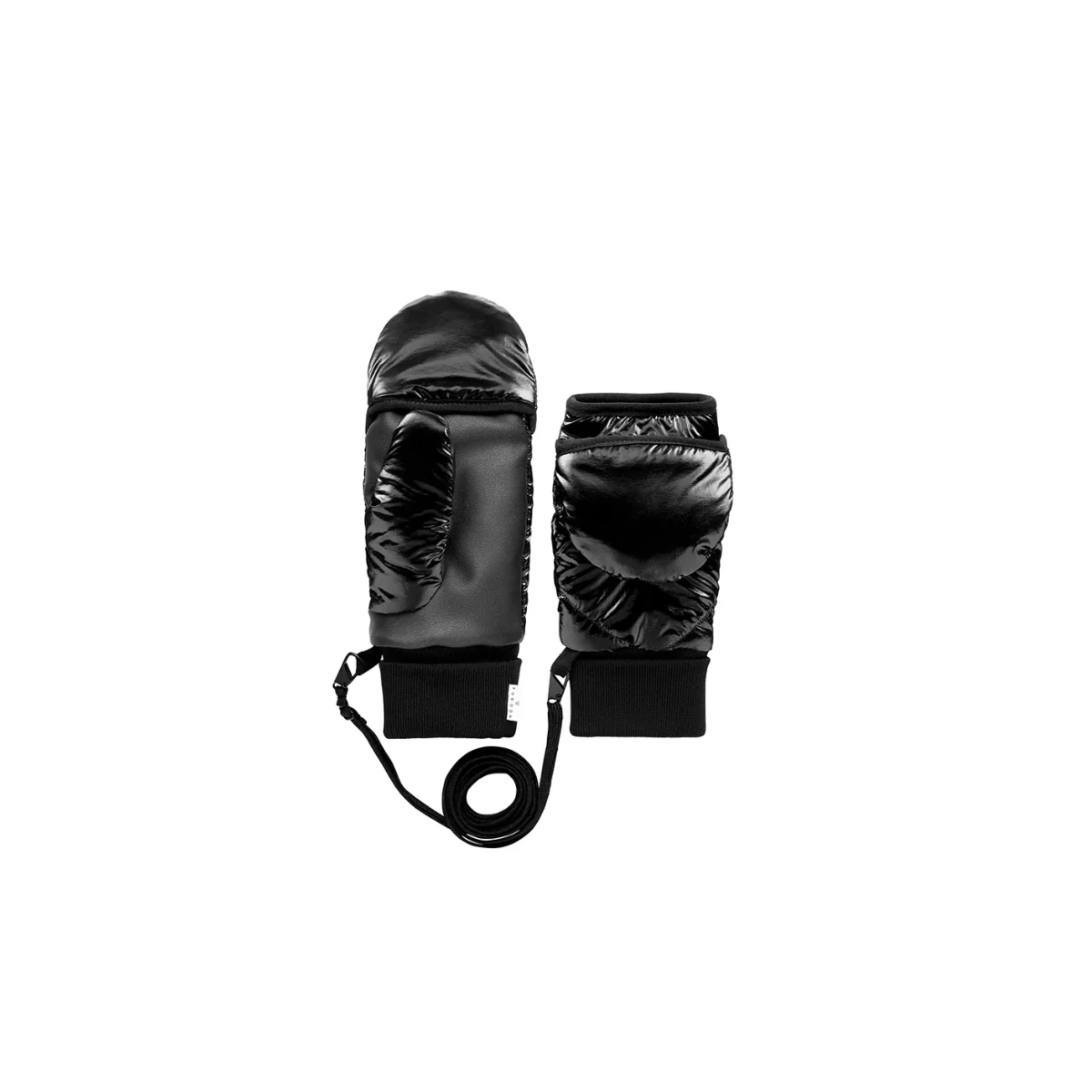 Moufles convertibles mitaines noir vinyle
